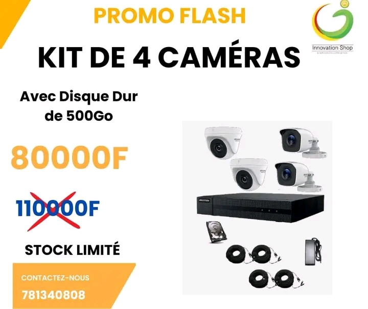 KIT DE 4 CAMERAS avec DVR ET DISQUE DUR DE 500Go et de 4 CABLES DE 20m