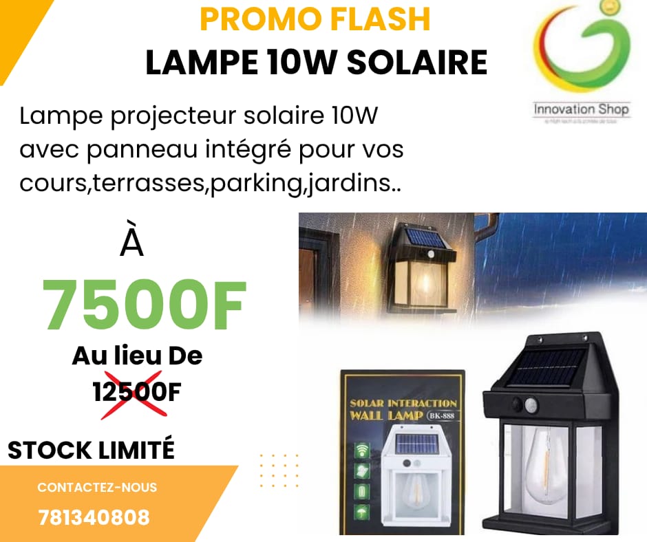 Lampe projecteur solaire 10W avec panneau intégré pour vos cours, terrasses, parking, jardins.