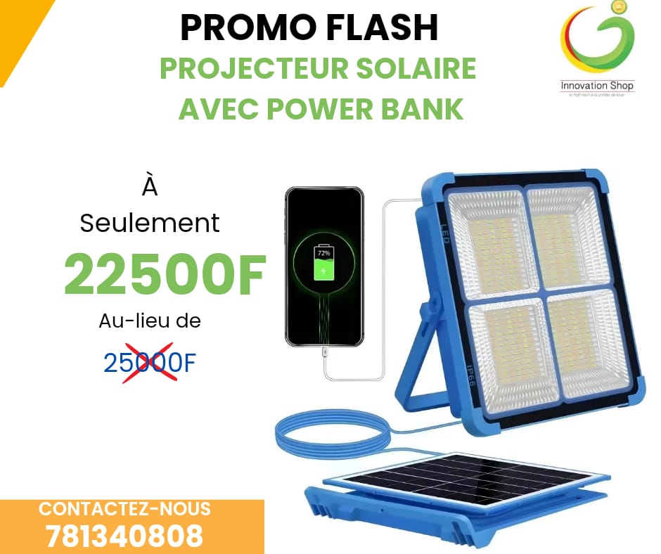 Projecteur Solaire 50W avec PowerPoint bank pour charger vos téléphones..