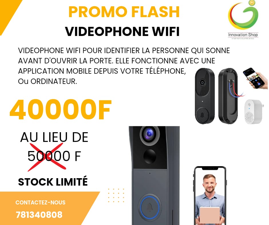 Vidéophone Wifi pour identifier la personne qui sonne avant d’ouvrir la porte, elle fonctionne avec une application mobile depuis votre téléphone ou ordinateur.